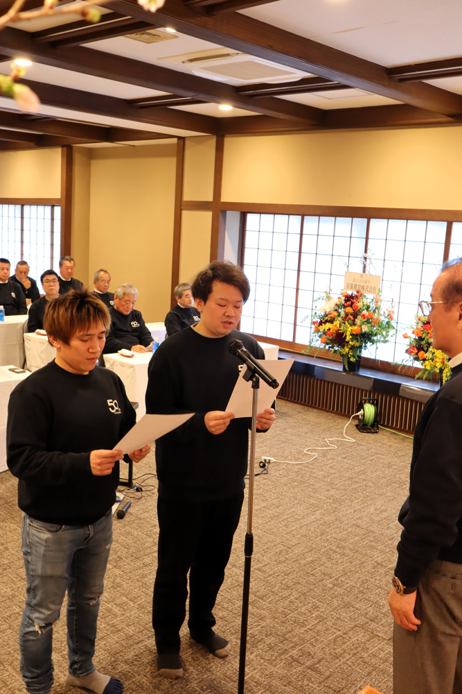第50期における様々な課題を全社員一丸となって創意工夫と結束力で更なる発展と成長を目指して邁進していくことを社員全員で誓いました。