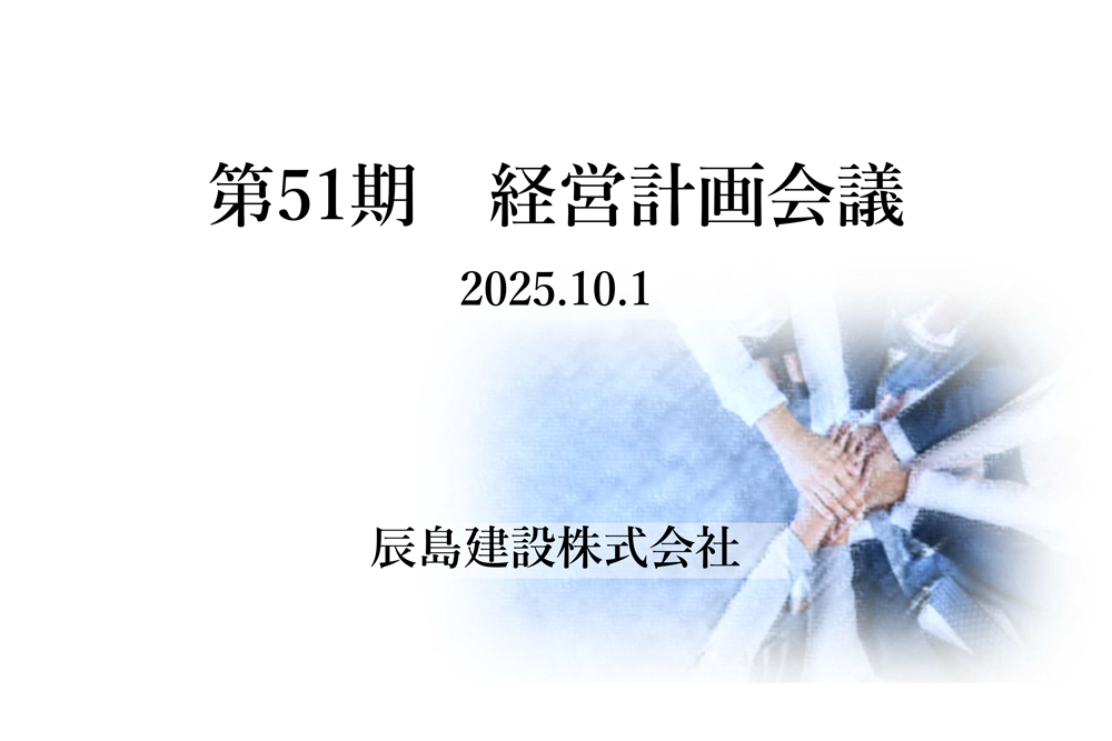 第49期は当社のビジョンや企業理念の再認識、更に「全ての業務に3配りの徹底」して全社員が自律したルール重視の仕組み化で辰島建設の社員としてのプライドを持ち自律的業務遂行で個人と企業の成長を図って参ります。
