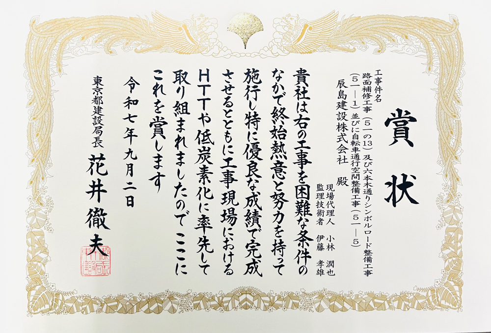受賞内容:建設局優良工事及び建設局 HTT ゼロエミッション優良取組工事